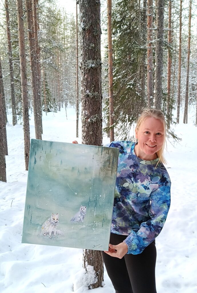 Asun Lempäälässä ja Soiniin minulla on yhteyksiä puolisoni kautta. Teokseni syntyvät intuitioni kautta ja palavasta halusta leikitellä väreillä luoden uutta tarinaa. Mielestäni luonto ja sen asukkaat ovat äärettömän kaunis, suuri taideteos, jonka pieniä palasia koetan vangita teoksiini.