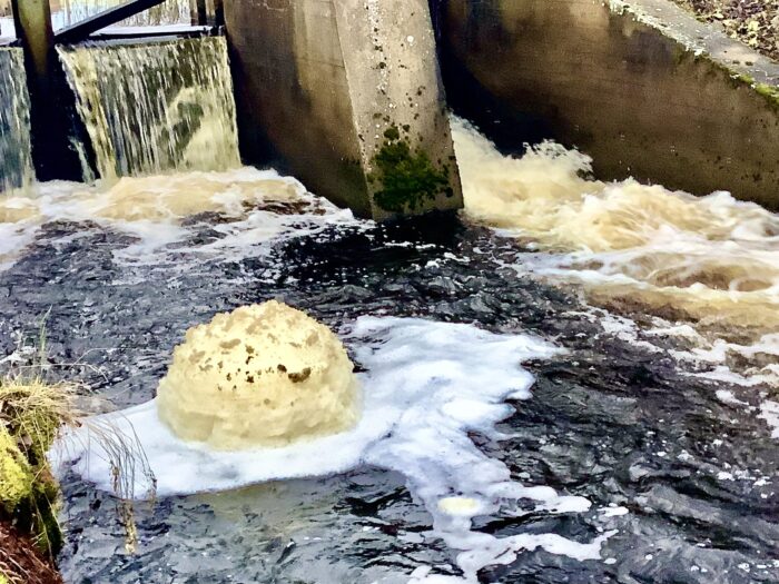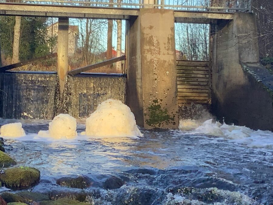 Tottelin toivetta iltapäivällä ja lähdin katsomaan mistä erikoisuudesta on kyse. Ja totta tosiaan kosken kuhuissa oli muodostunut, noin 2-metriä halkaisijaltaan ja toista metriä korkea vaahtosieni.