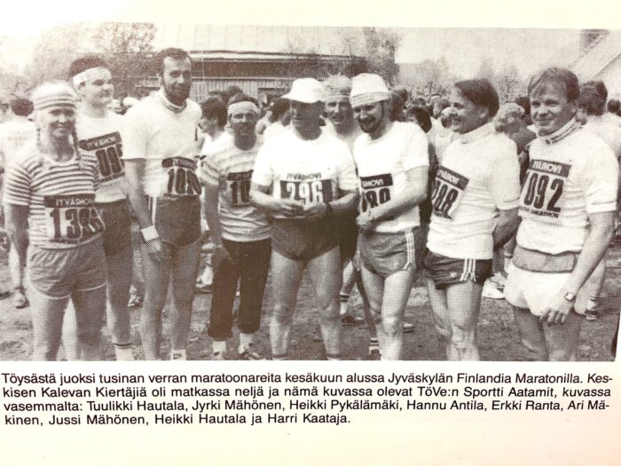 Eniten töysäläisiä osallistui samanaikaisesti Finlandia marotonille, kun v.1987 juoksi täyden maratonin 12 henkilöä.