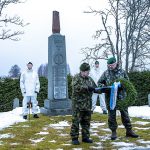 Seppeleet sankarihaudoille sateisessa säässä.